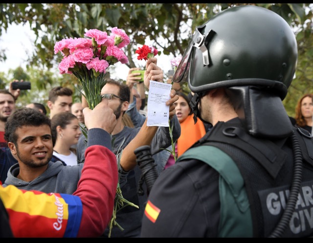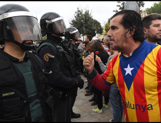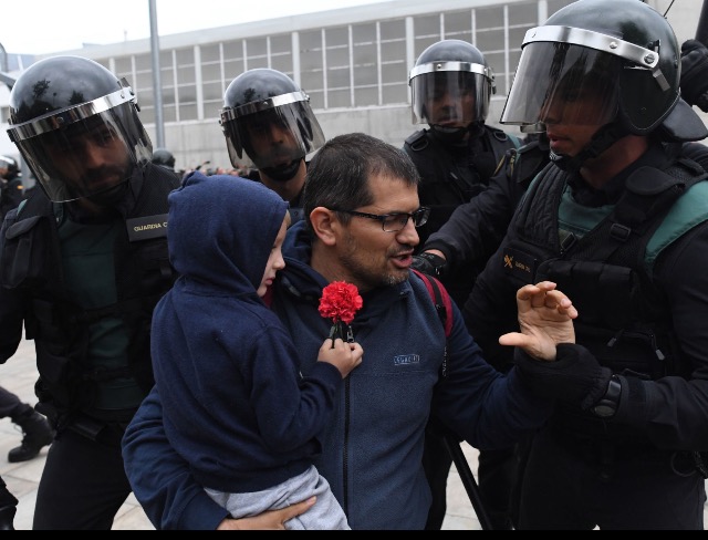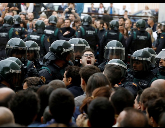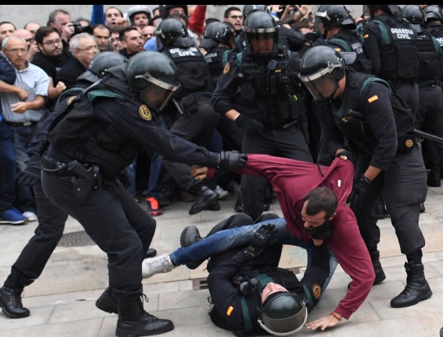 A voter confronts the policePolice wrestles a protester to the groundCatalonians stooping to conquerA voter is floored
